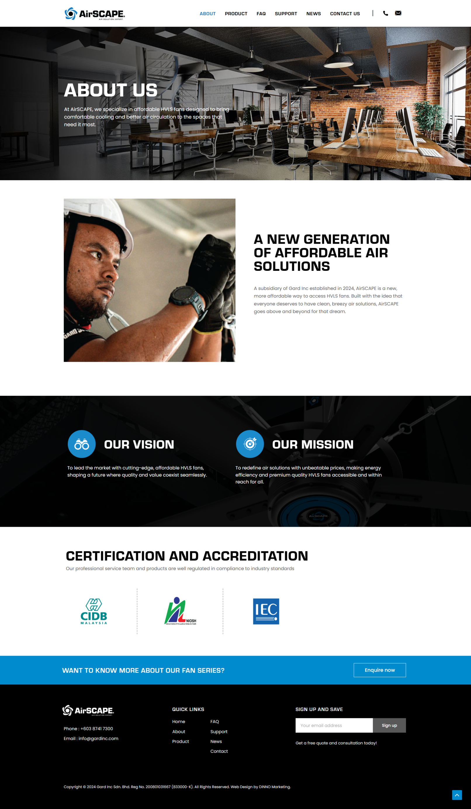 A subsidiary of Gard Inc established in 2024, AirSCAPE is a new, more affordable way to access HVLS fans. Built with the idea that everyone deserves to have clean, breezy air solutions, AirSCAPE goes above and beyond for that dream.