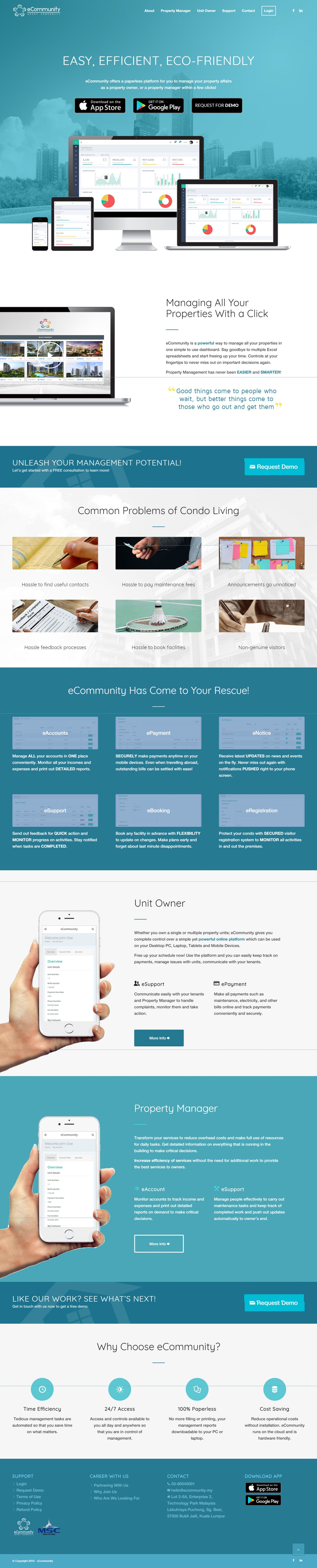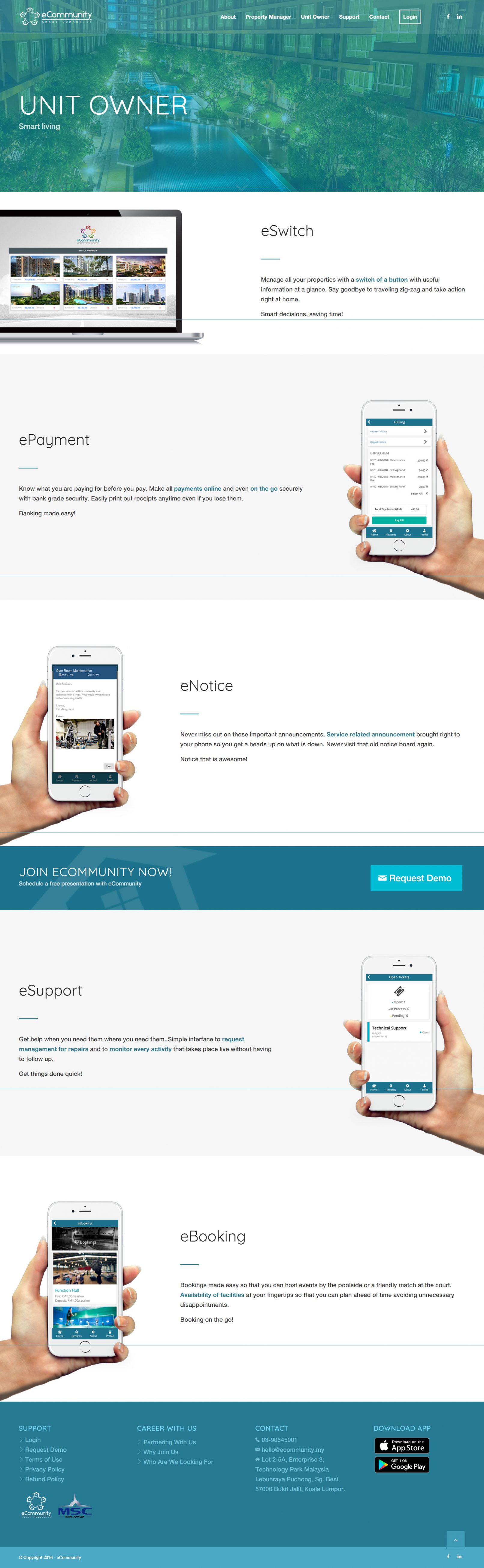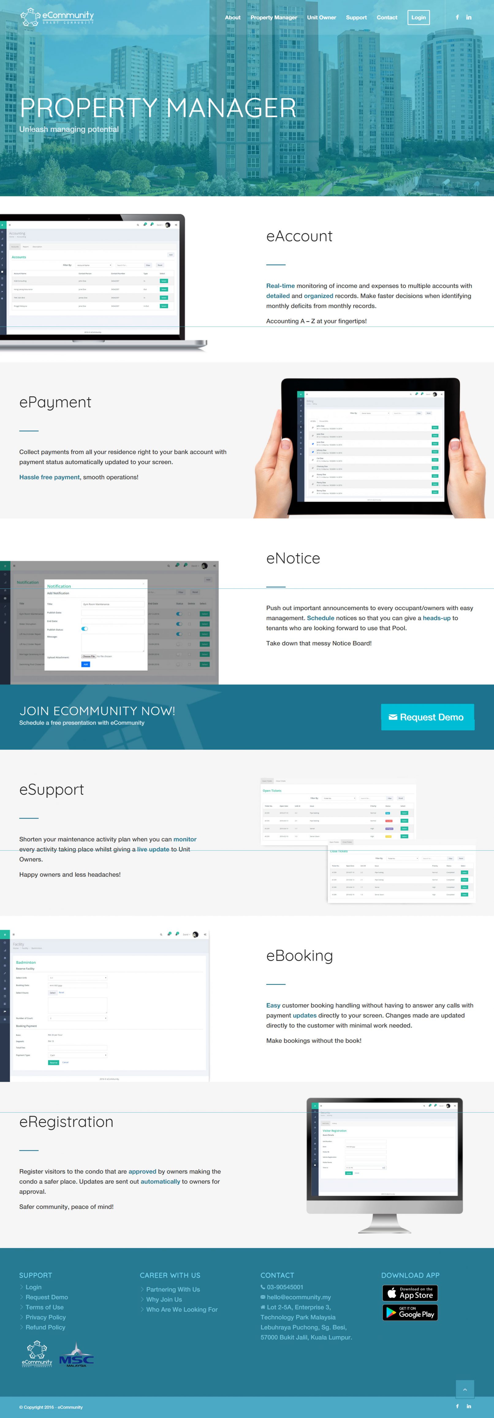 eCommunity offers a paperless platform for you to manage your property affairs as a property owner, or a property manager within a few clicks!