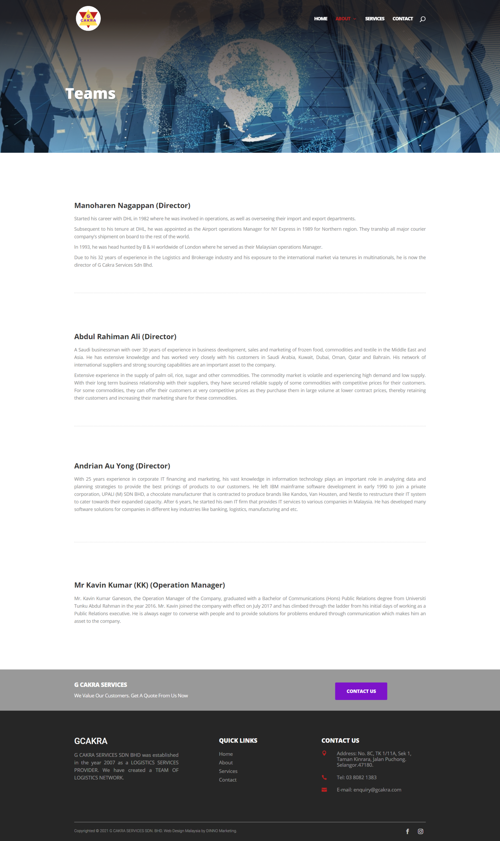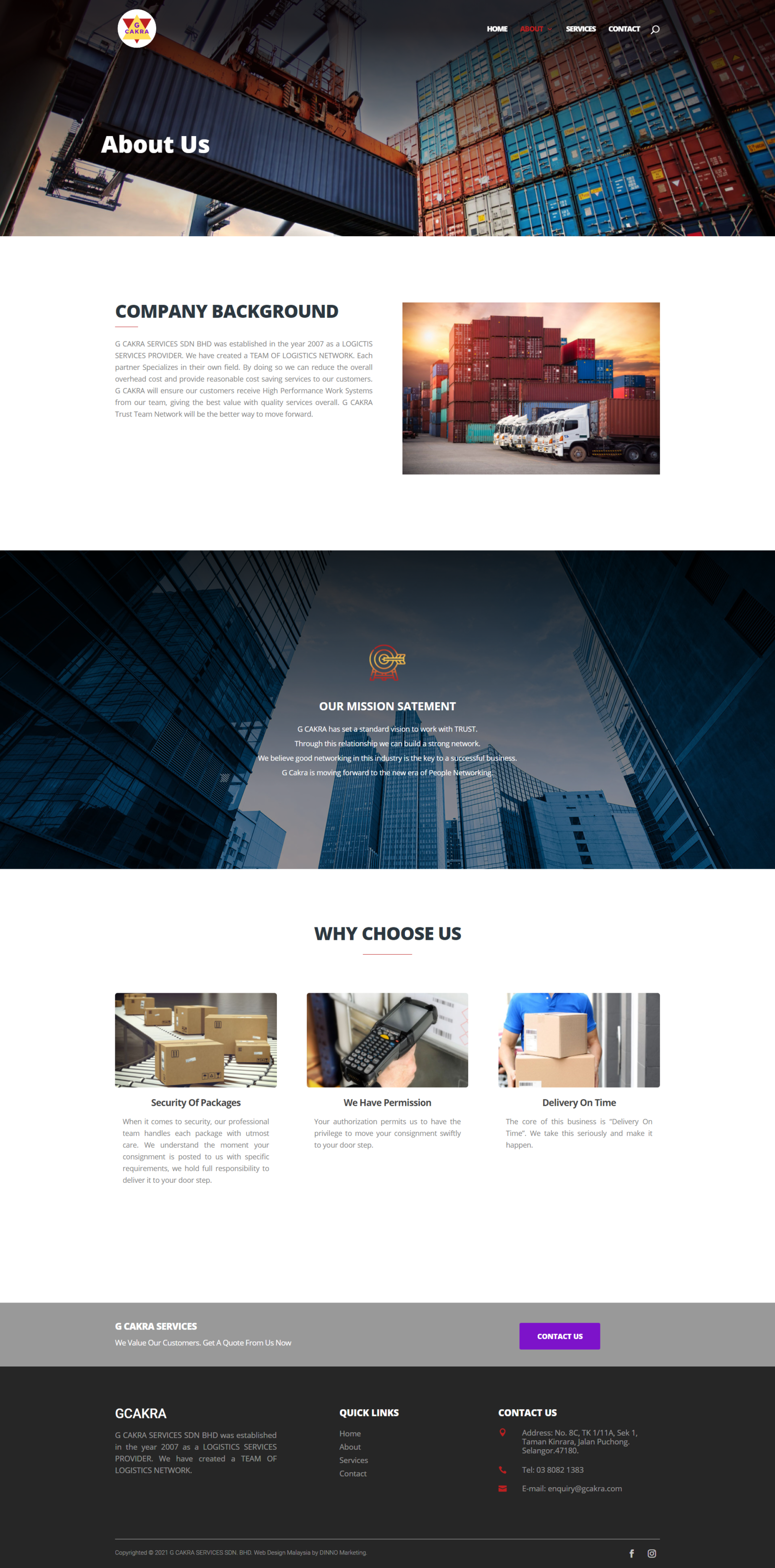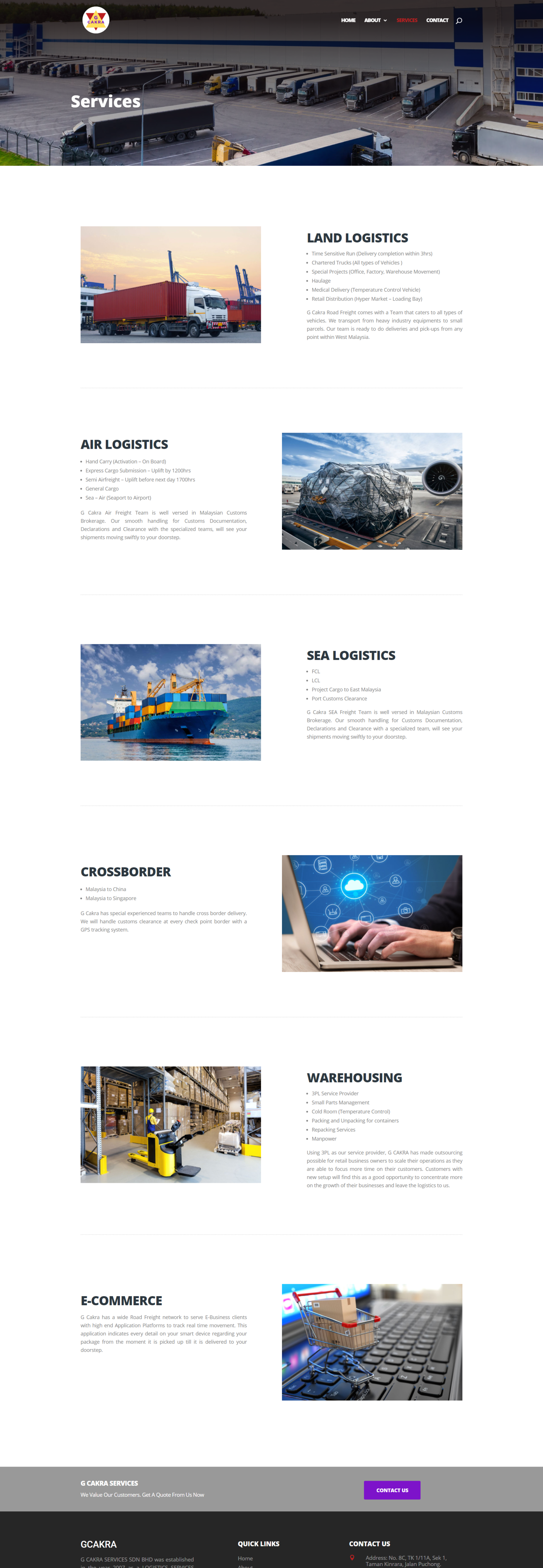 G CAKRA SERVICES SDN BHD was established in the year 2007 as a LOGICTIS SERVICES PROVIDER. We have created a TEAM OF LOGISTICS NETWORK. Each partner Specializes in their own field.