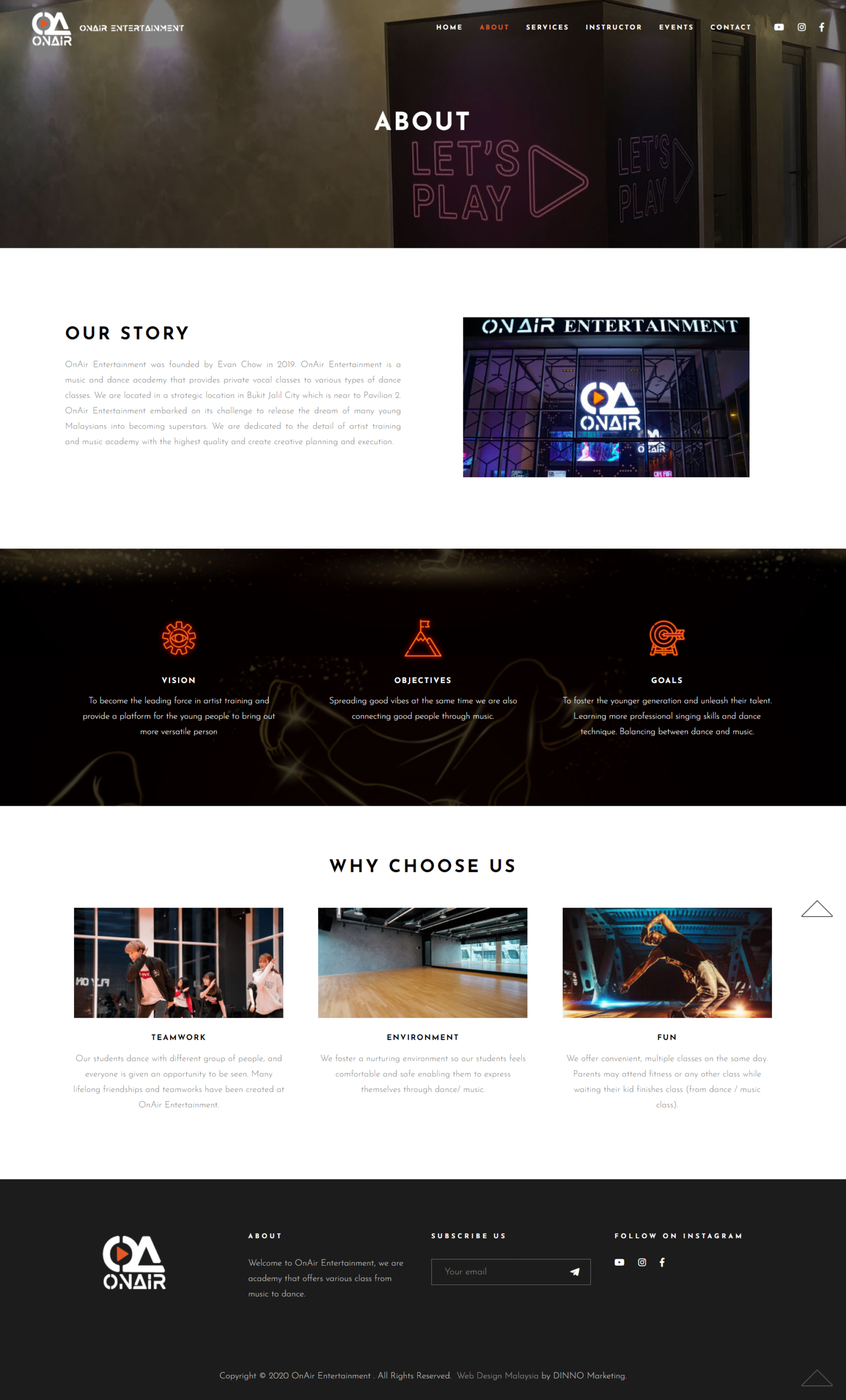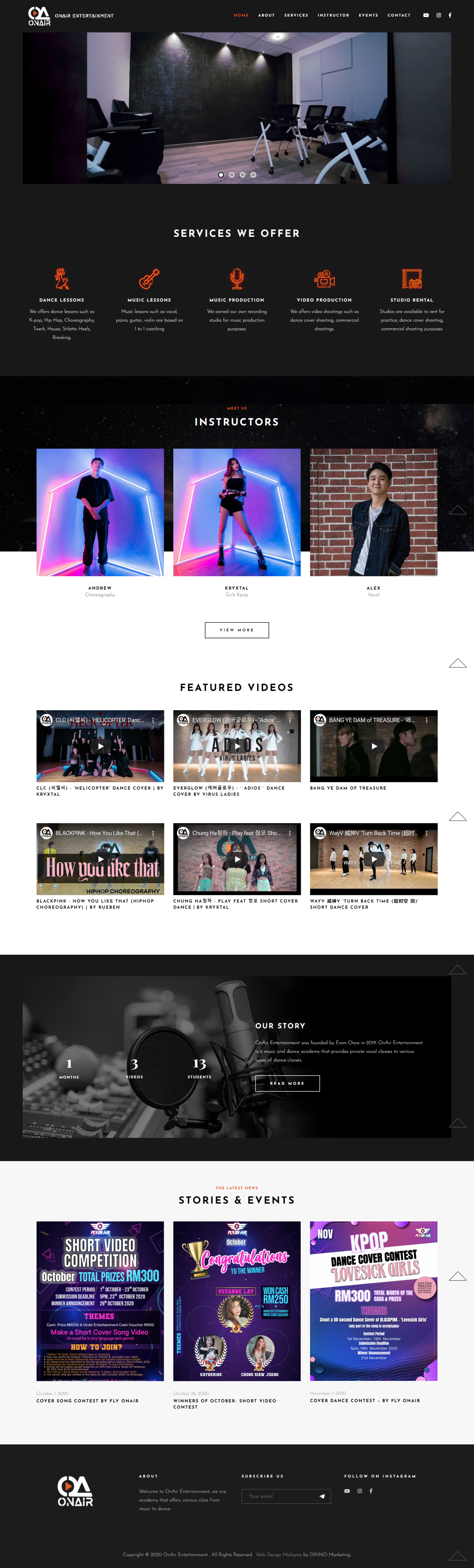 OnAir Entertainment was founded by Evan Chow in 2019. OnAir Entertainment is a music and dance academy that provides private vocal classes to various types of dance classes.