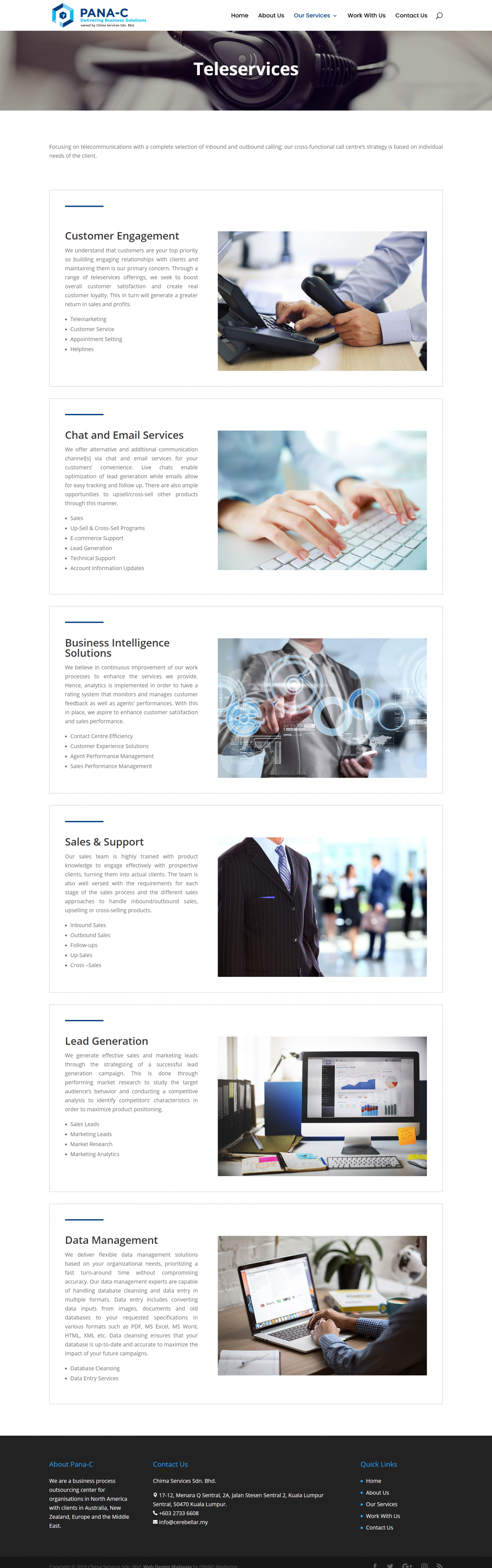 We are a business process outsourcing center for organisations in North America with clients in Australia, New Zealand, Europe and the Middle East. We have expertise in the areas of teleservices and digital marketing.