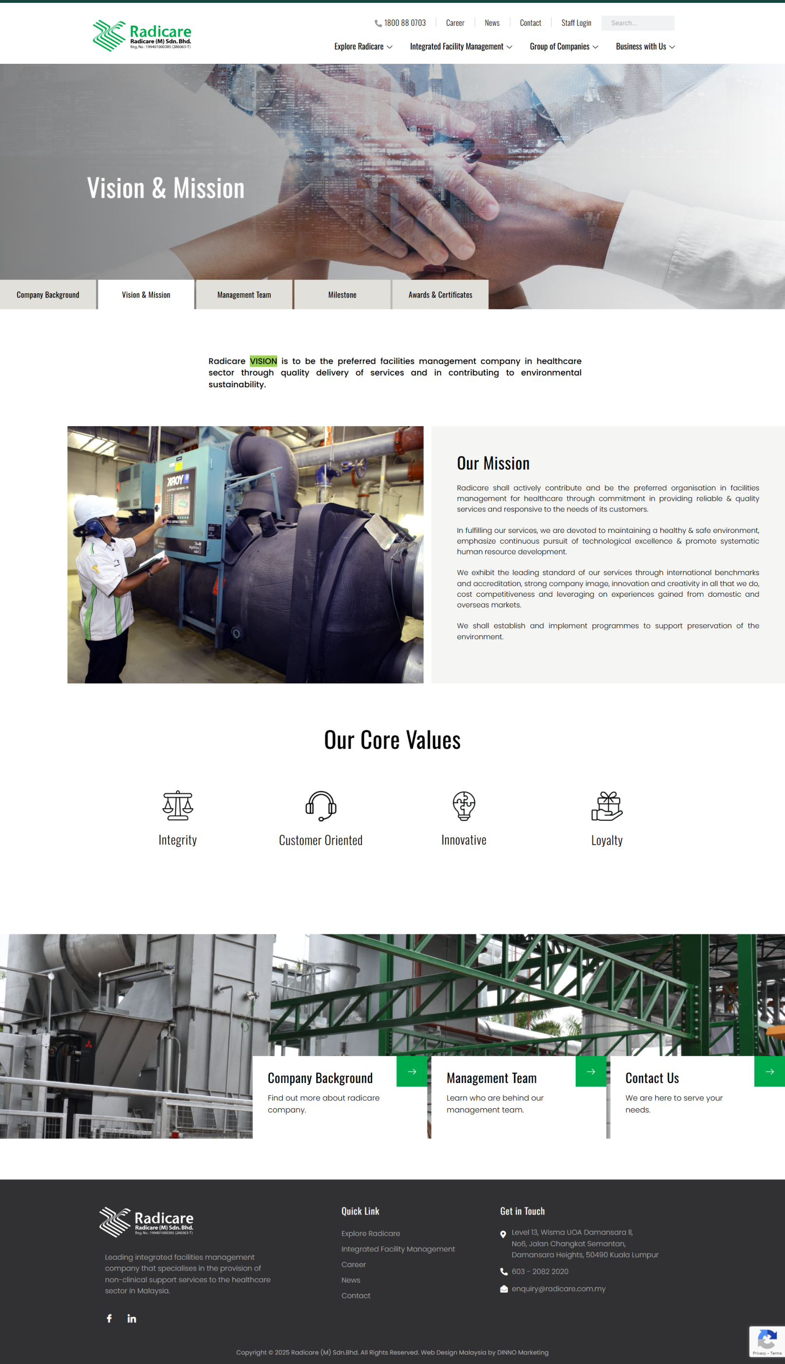 RADICARE (M) SDN BHD is a leading integrated facilities management company that specialises in the provision of non-clinical support services to the healthcare sector in Malaysia.