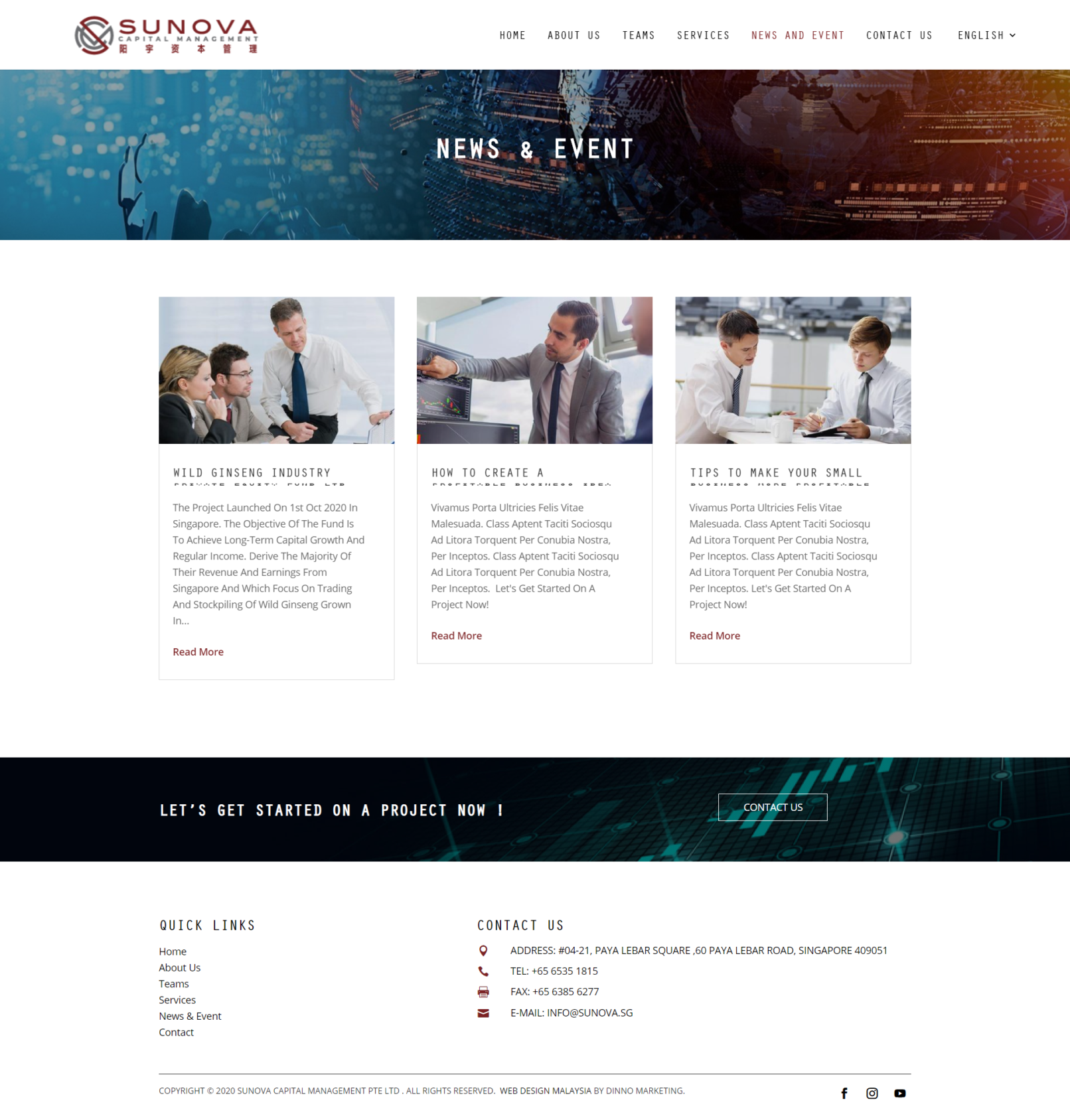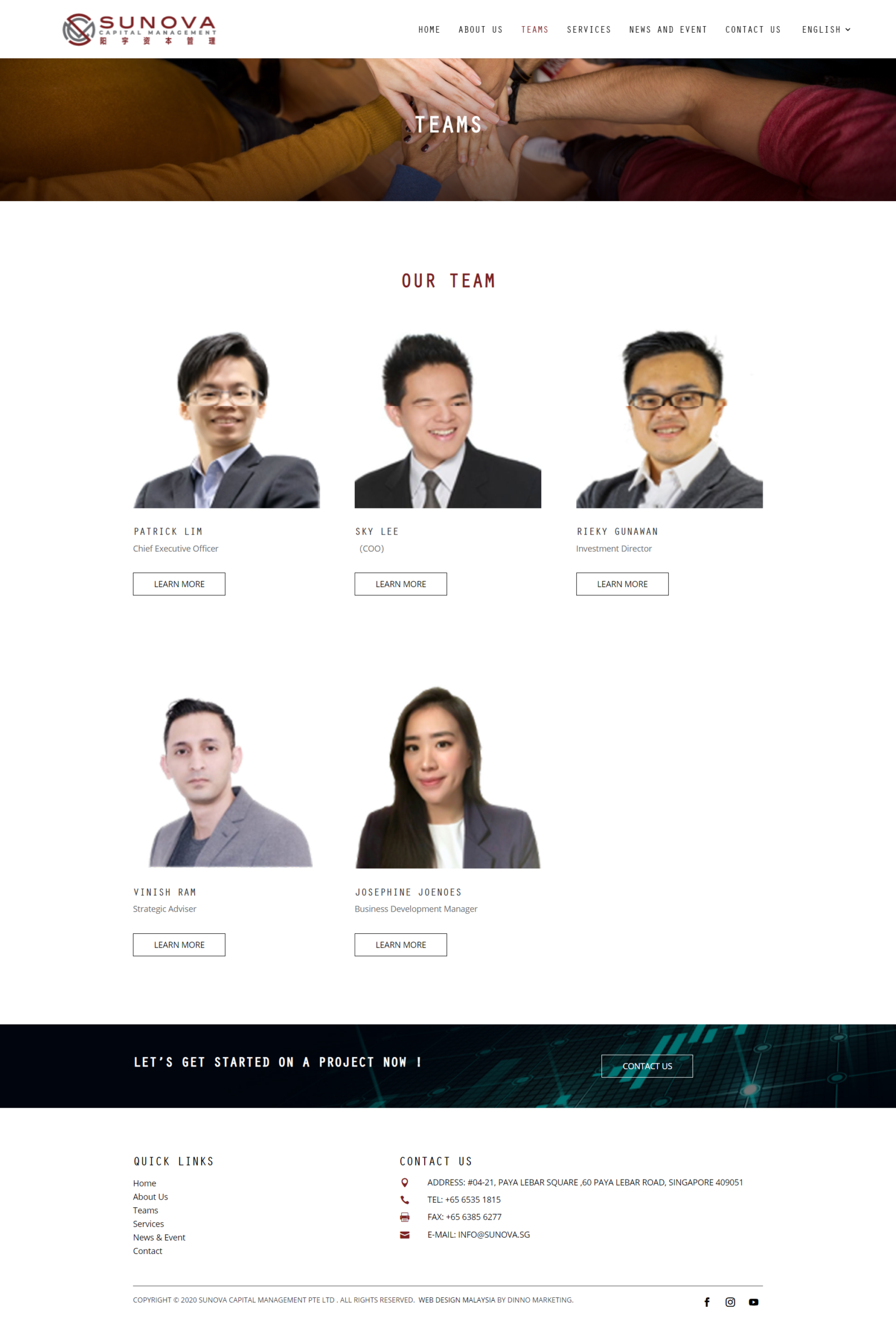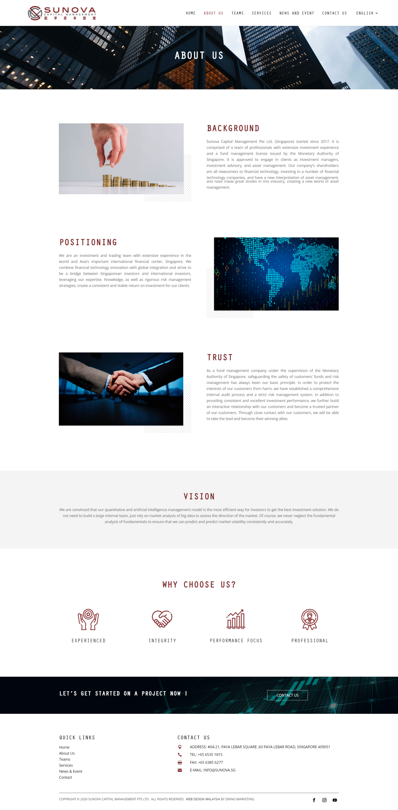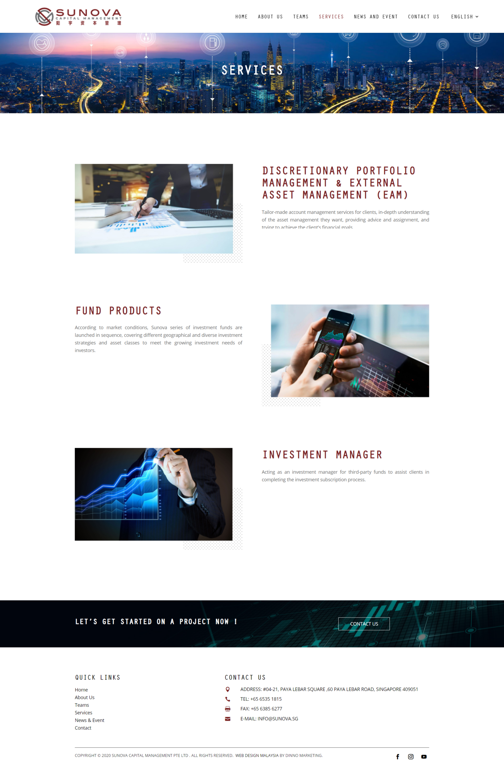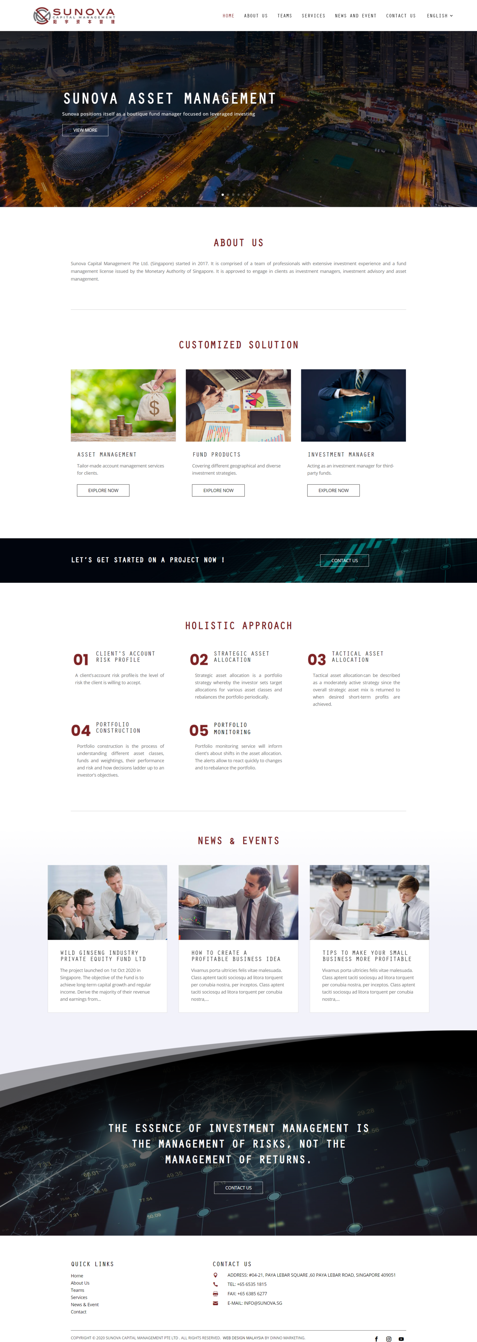 Sunova Capital Management Pte Ltd. (Singapore) started in 2017. It is comprised of a team of professionals with extensive investment experience and a fund management license issued by the Monetary Authority of Singapore. It is approved to engage in clients as investment managers, investment advisory and asset management.
